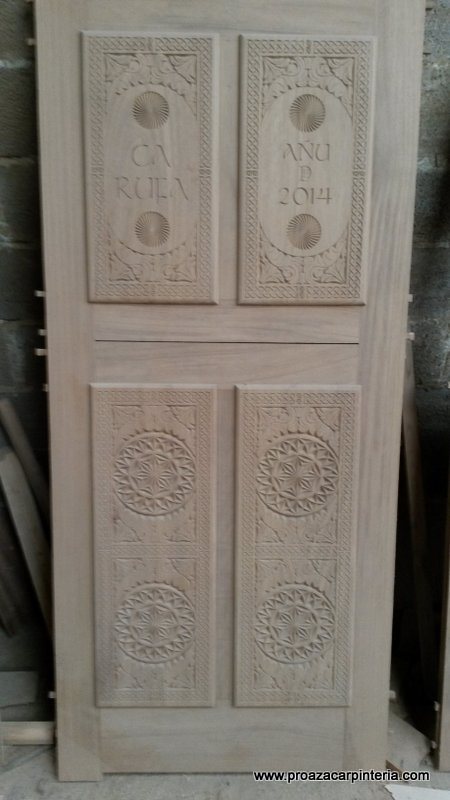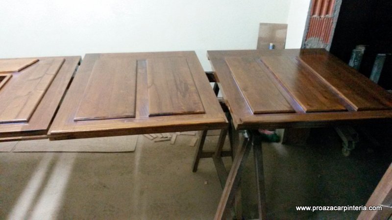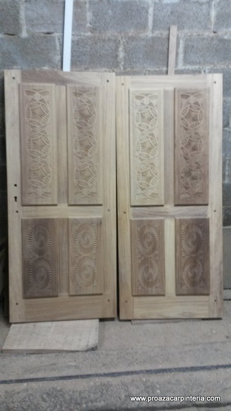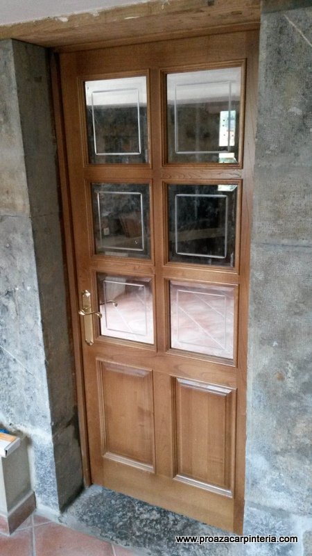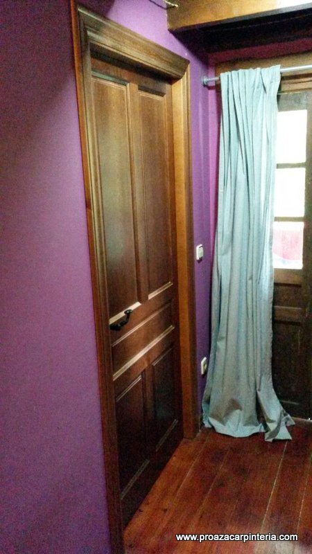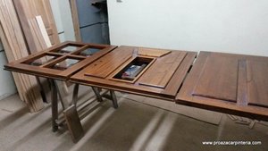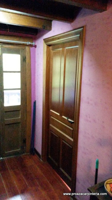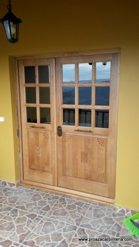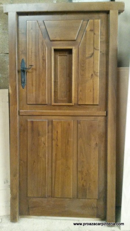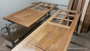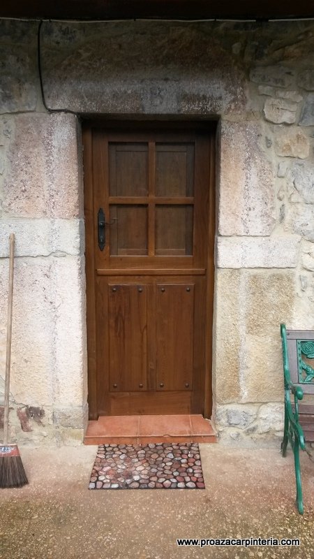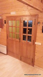 Fabricamos puertas de entrada y puertas de paso en todo tipo de maderas. Todo en madera maciza y en el diseño que desee nuestro cliente. Herrajes de primera calidad con acabados muy variados, cerraduras de seguridad multipunto, sistemas antibumping, bisagras antipalanca y todo tipo de accesorios. Espesores de 4cm de madera en puertas de entrada y 3,5cm en puertas de paso, guarniciones y batientes todo en macizo. Puertas rusticas para rehabilitaciones de viviendas, puertas de cuarteron, puertas talladas. Utilizamos madera seleccionada de primera calidad con todas las caras limpias y un secado garantizado. Barnizados en poliuretano o en barnices al agua dependiendo de su uso y colocación. |